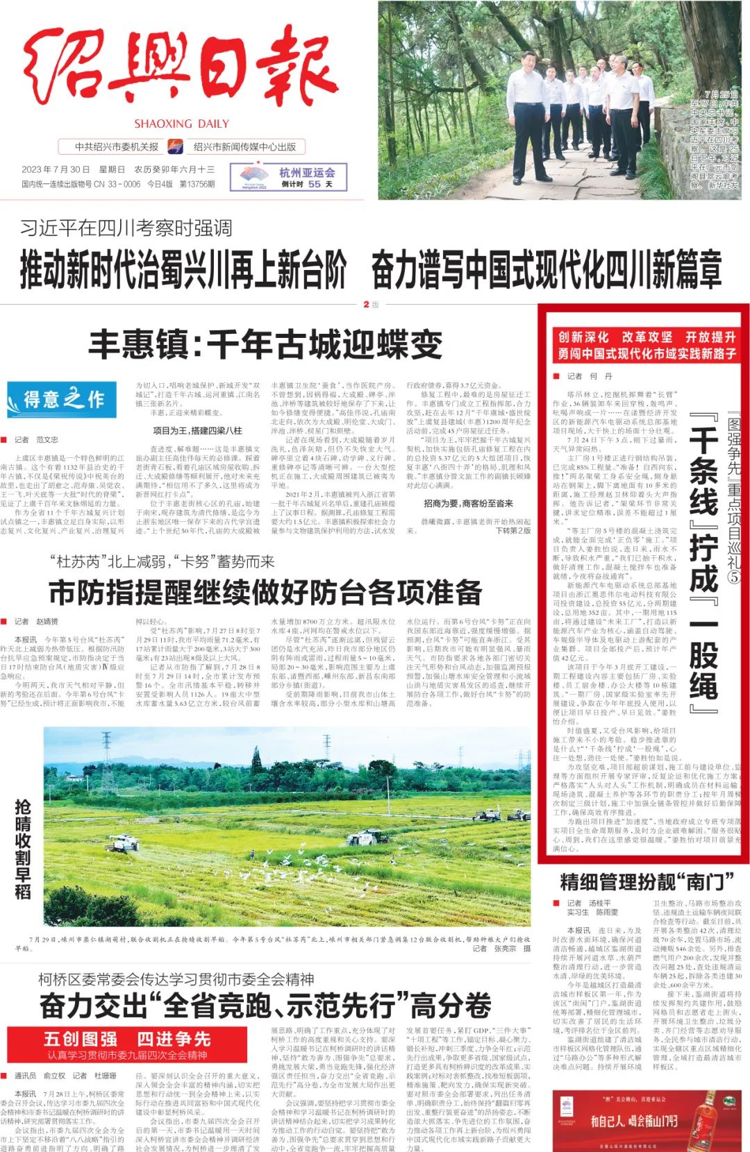 ▲《紹興日報》2023年7月30日頭版刊發《“千條線”擰成“一股繩”》,報道了OSWELL諸暨總部基地項目建設情況。