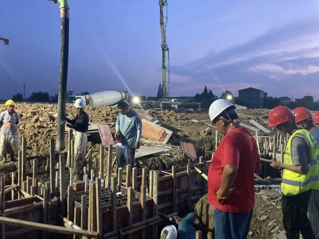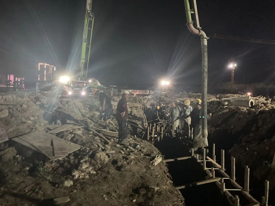 “等主廠房5號樓的混凝土澆筑完成,就能全面完成‘正負零’施工。”項目負責人姜勝怡說,連日來,雨水不斷,導致積水嚴重,“我們已抽干積水,做好清理工作,混凝土攪拌車也準備就緒,今夜將奮戰通宵”。