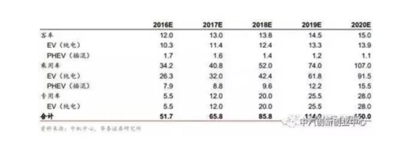 2016 年 12 月,國務院批復與公布了《十三五國家戰略性新興產業發展規劃》,明確提出到 2020 年,新能源汽車實現當年產銷 200 萬輛以上,累計產銷超過 500 萬輛。 考慮到產業實際與完成情況,我們預測 2017 年新能源汽車總銷量可達到 65.8 萬輛,其中客車、乘用車、專用車分別達到 13 萬、 40.8 萬、 12 萬輛,其中乘用車和專用車提供了主要增量部分。 由此測算, 2017 至 2020 年,新能源汽車電機、電控市場規模將從 240 億元上升至480 億元, 年均增長率約為 26%。