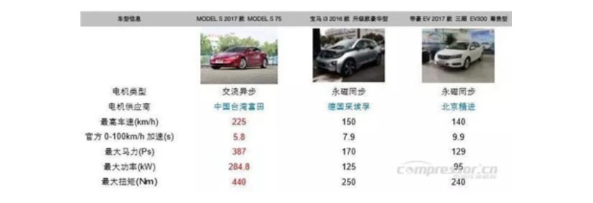 圖表6:主流電動車電機參數對比
