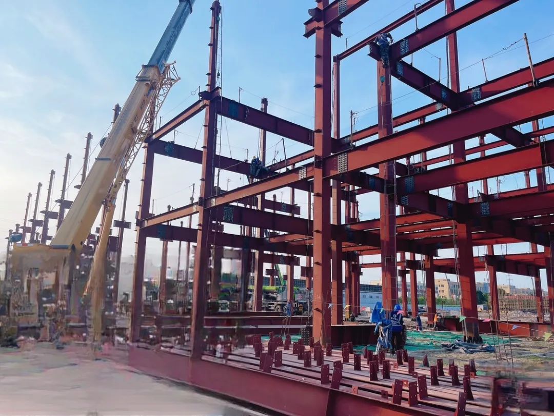 主廠房1號樓正進行鋼結構吊裝,已完成85%工程量。“準備!自西向東,推!”兩名架梁工身系安全繩,側身懸站在鋼架上,腳下離地面有10多米的距離,施工經理趙衛林仰著頭大聲指揮。他告訴記者,“架梁環節非常關鍵,講求定位精準,誤差不能超過1厘米。”